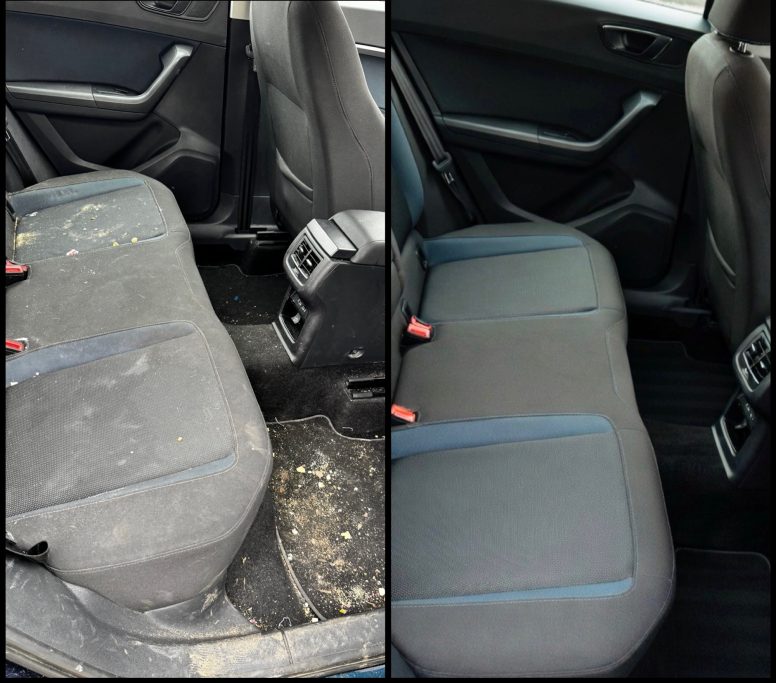 Seats, carpets & boot vacuumed, wet carpet cleaned, steamed, dried & brushed